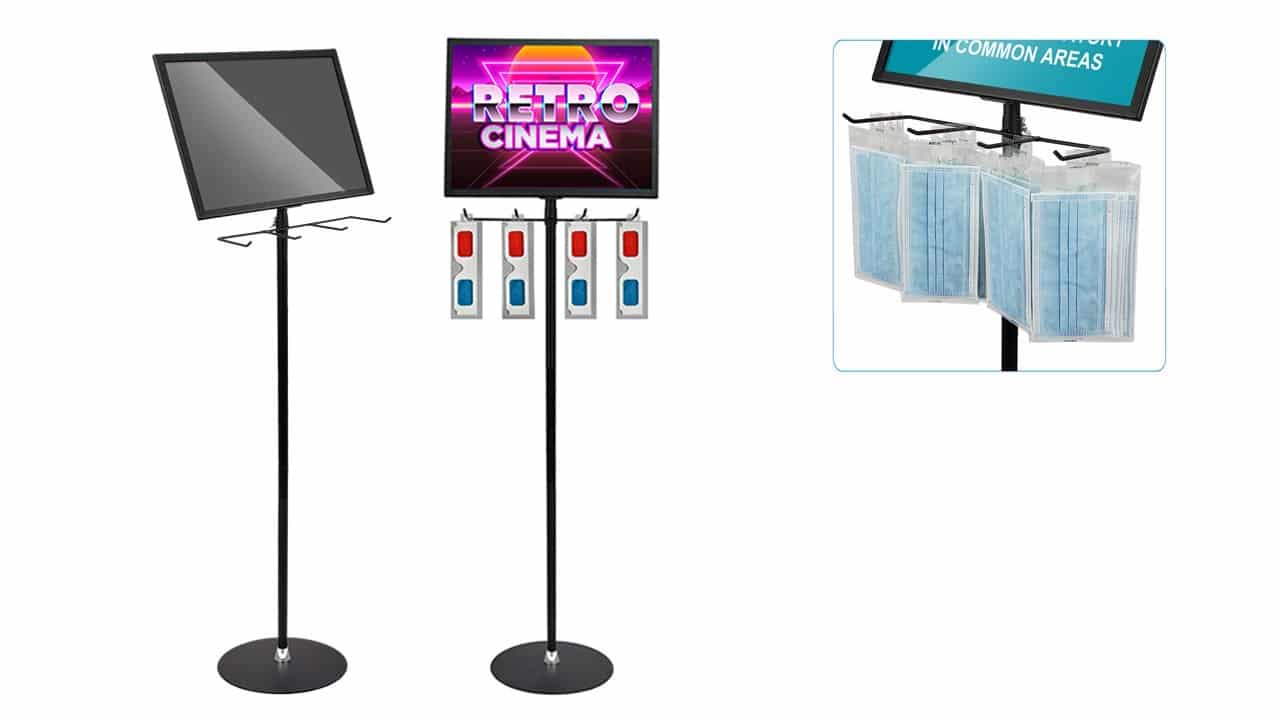 FLOOR SIGN HOLDER WITH FOUR MERCHANDISE HOOKS