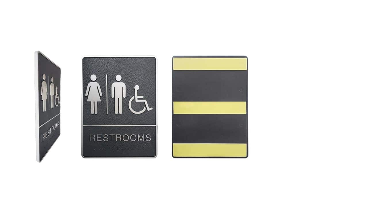 ADA “WASHROOM RESTROOMS – FEMALE + MALE + HANDICAP” SIGN – SIGN032G